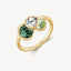 Anello in acciaio 316L e finitura pvd oro 14K composto da tre cristalli chiari, chrysolite e erinite tondi.