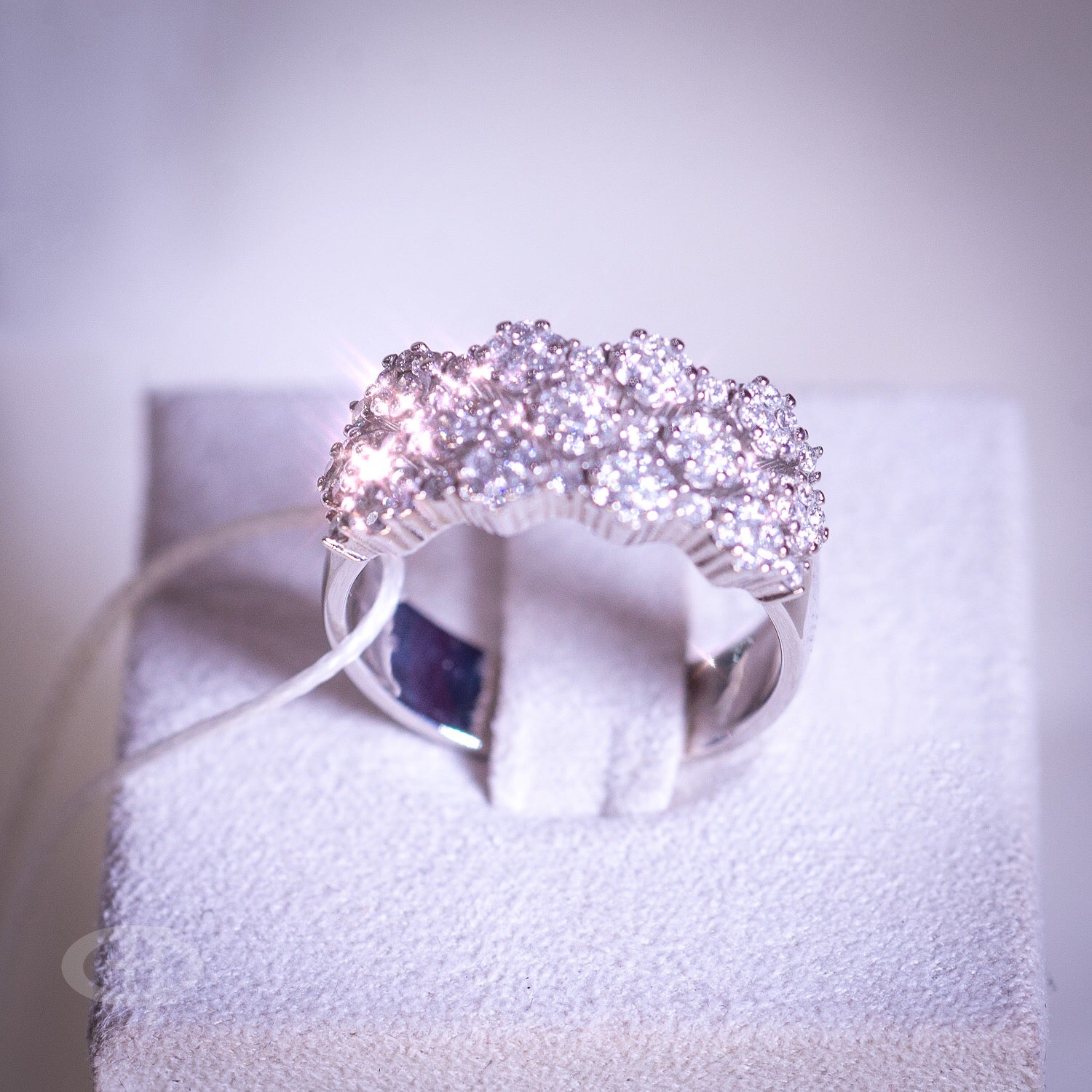 Anello in oro bianco 18 carati a fascia con tre file di diamanti da 0.66 carati.