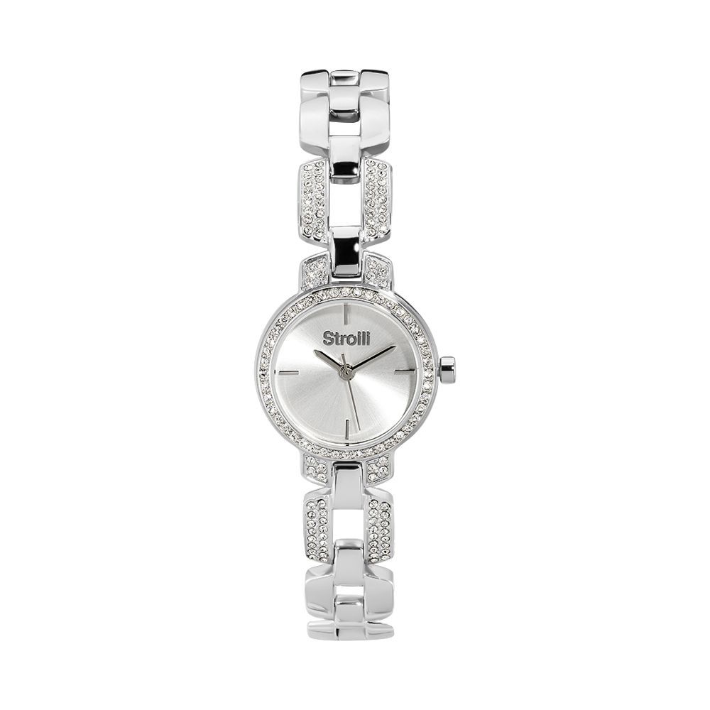 Orologio solo tempo con cinturino in acciaio, movimento al quarzo e cristalli bianchi. Cassa in acciaio e quadrante silver. Collezione Versailles. Impermeabilità 3 Atm. Cassa diametro Ø 21mm.