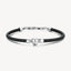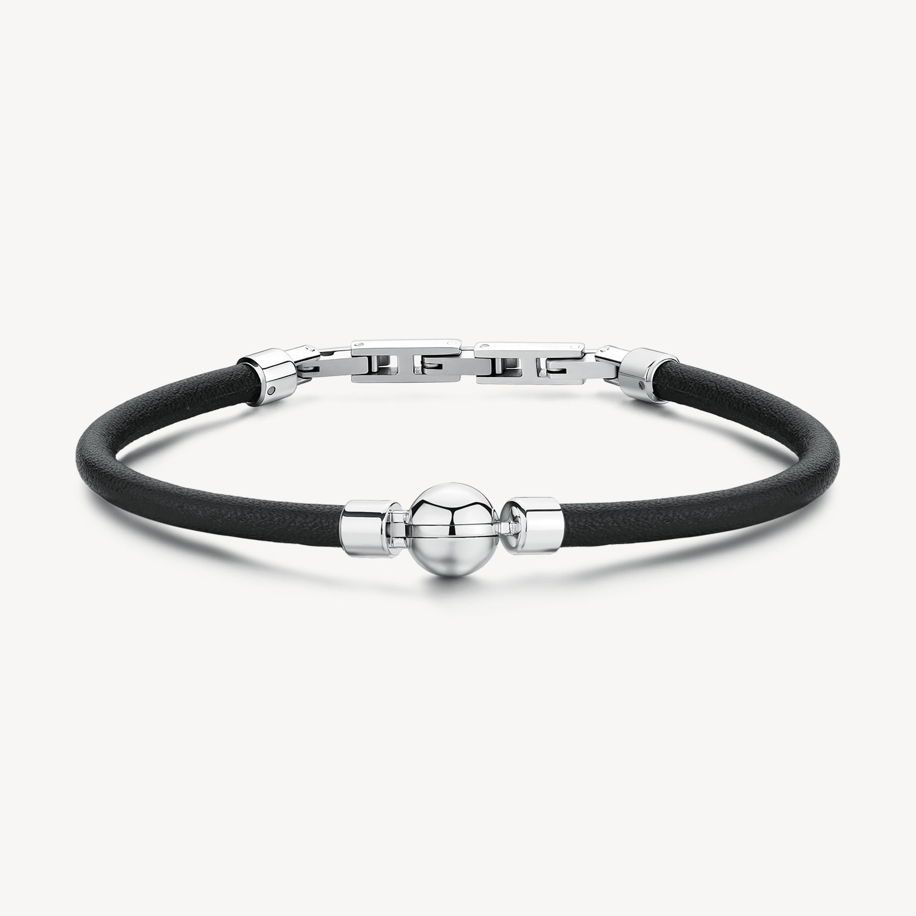 Bracciale in pelle nera con centrale a sfera in acciaio 316L.
