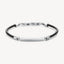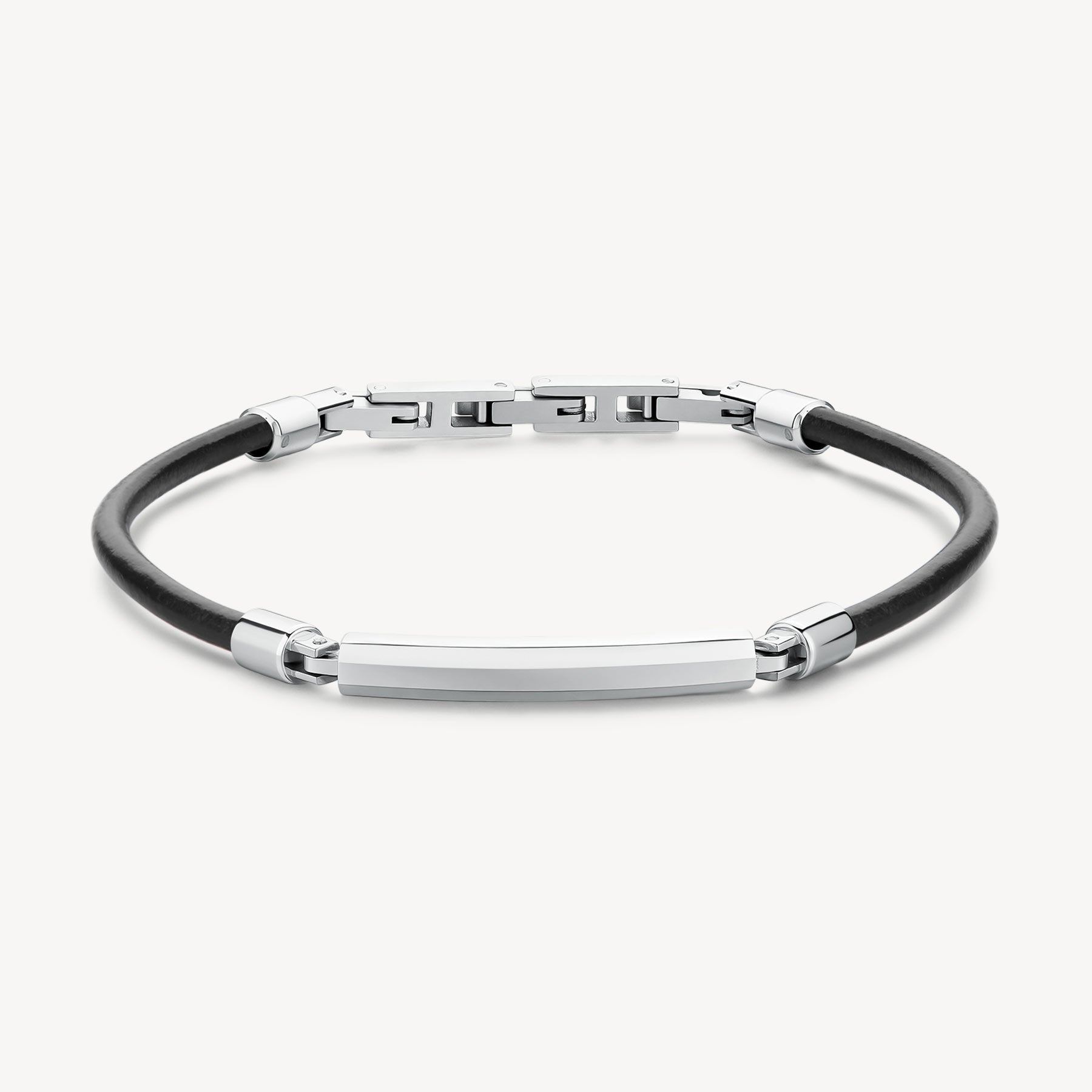 Bracciale in pelle nera con piastrina centrale in acciaio 316L.