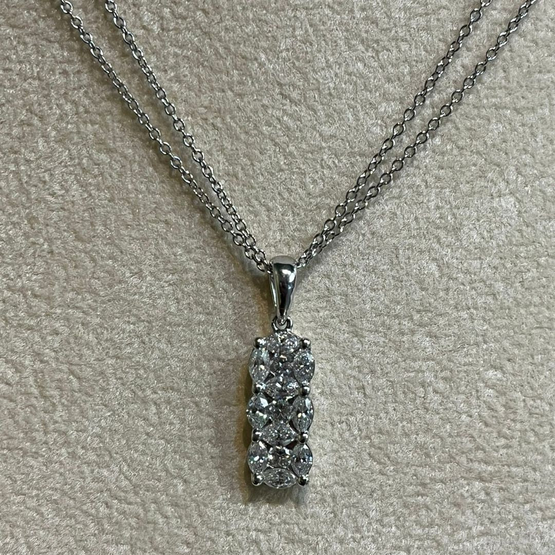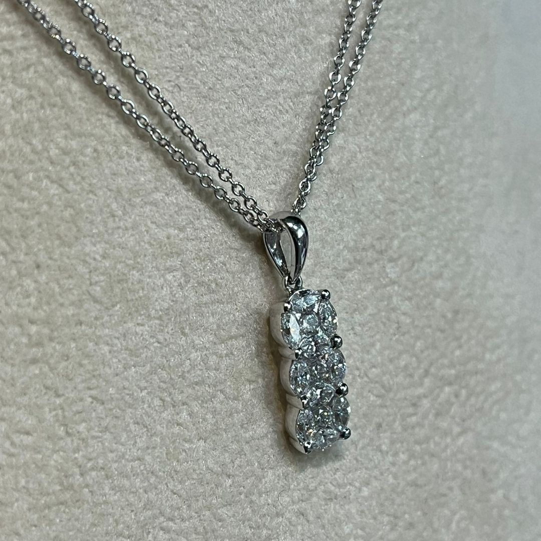 Collana in oro bianco 18 carati per complessivi g 12.50 con pendente trilogy di diamanti per complessivi ct 1,26 F VS