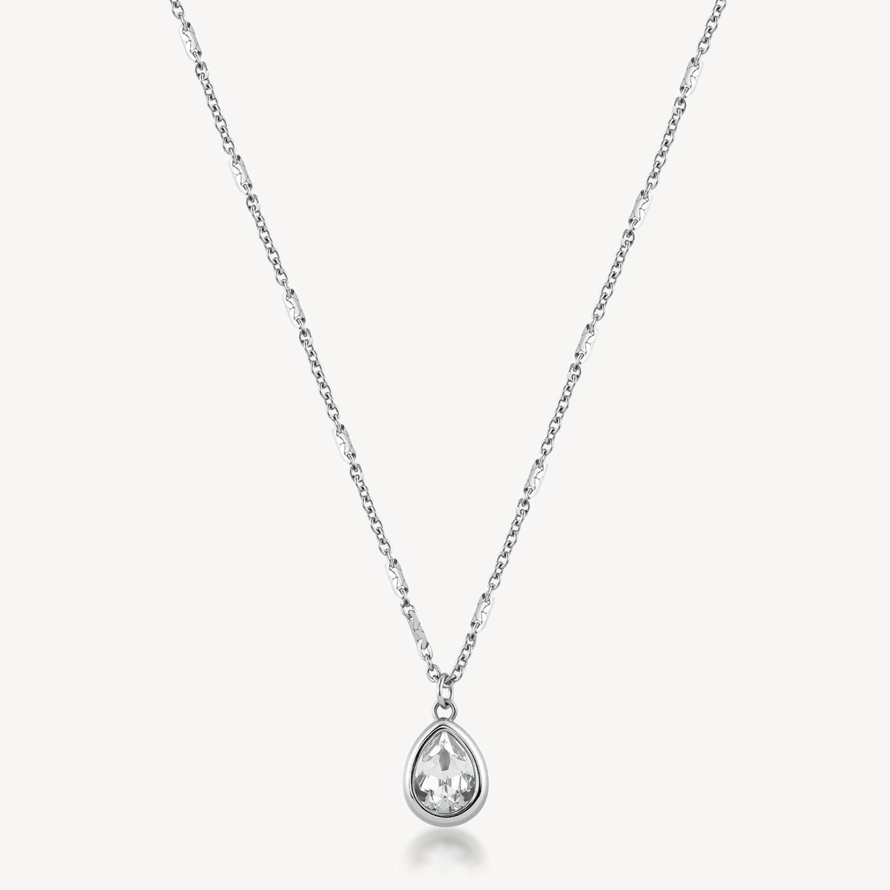 Collana in acciaio 316L con pendente con cristallo a forma di goccia.