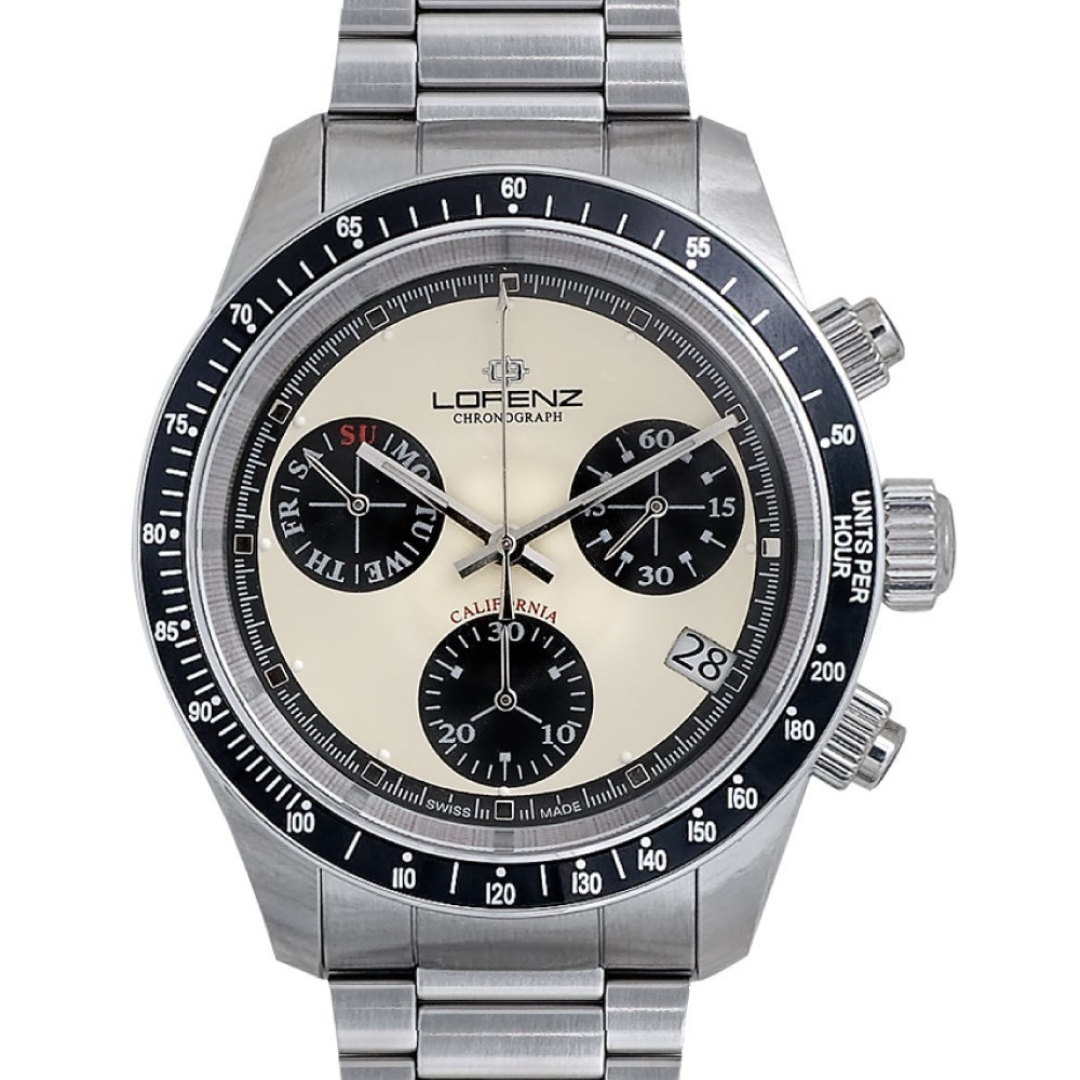 La collezione California, una linea di orologi sportivi Swiss Made con movimento al quarzo RONDA Z60. Disponibile in quattro colorazioni di quadrante, dai neutri bianco e crema ai toni più accattivanti nero e blu con i dettagli rossi. Come tutti i classici Swiss Made vengono custoditi in un cofanetto in legno e l'interno in floccato color crema. Un cronografo dai materiali resistenti destinato a durare nel tempo.