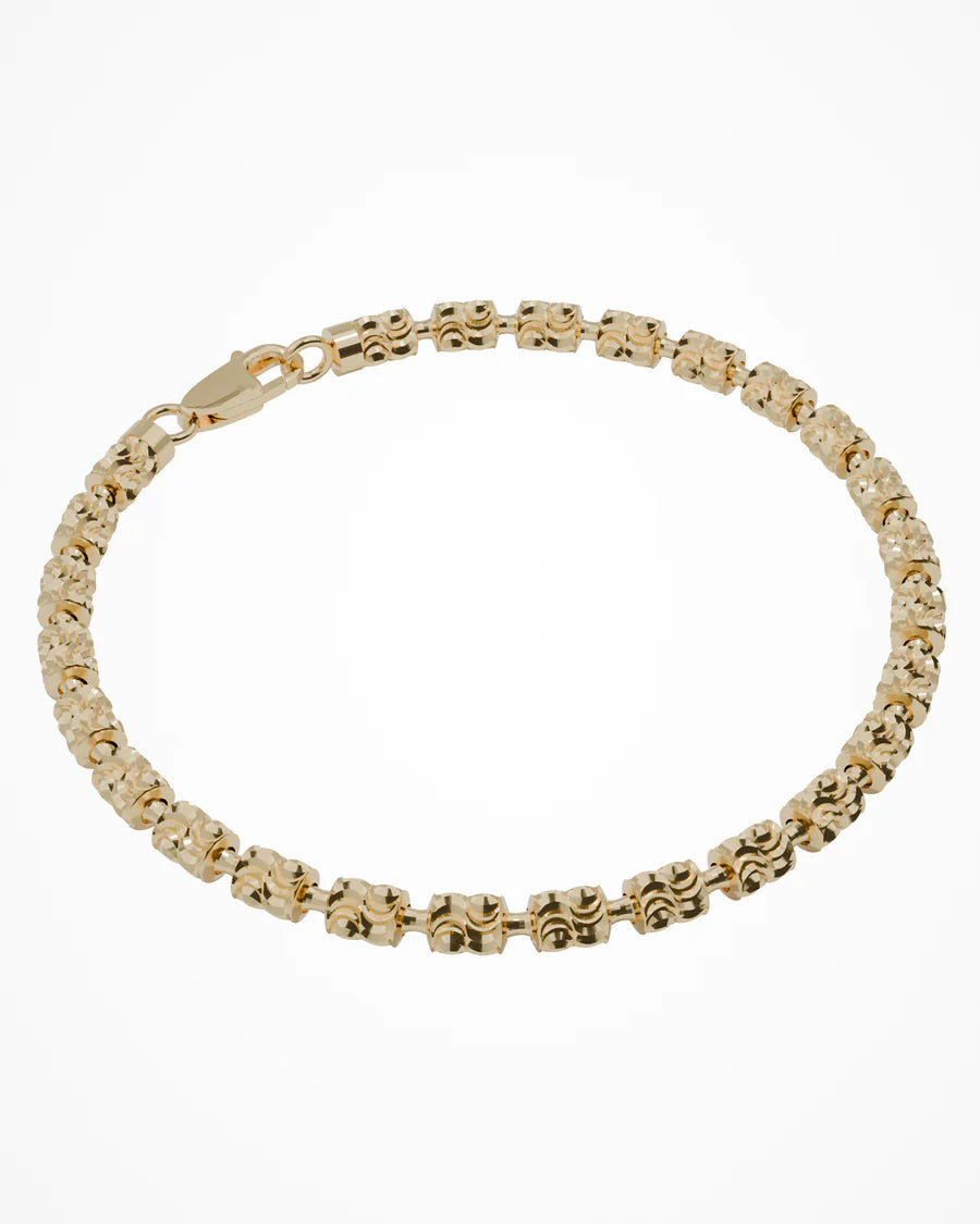 Bracciale in argento con sequenza di elementi cilindrici diamantati.