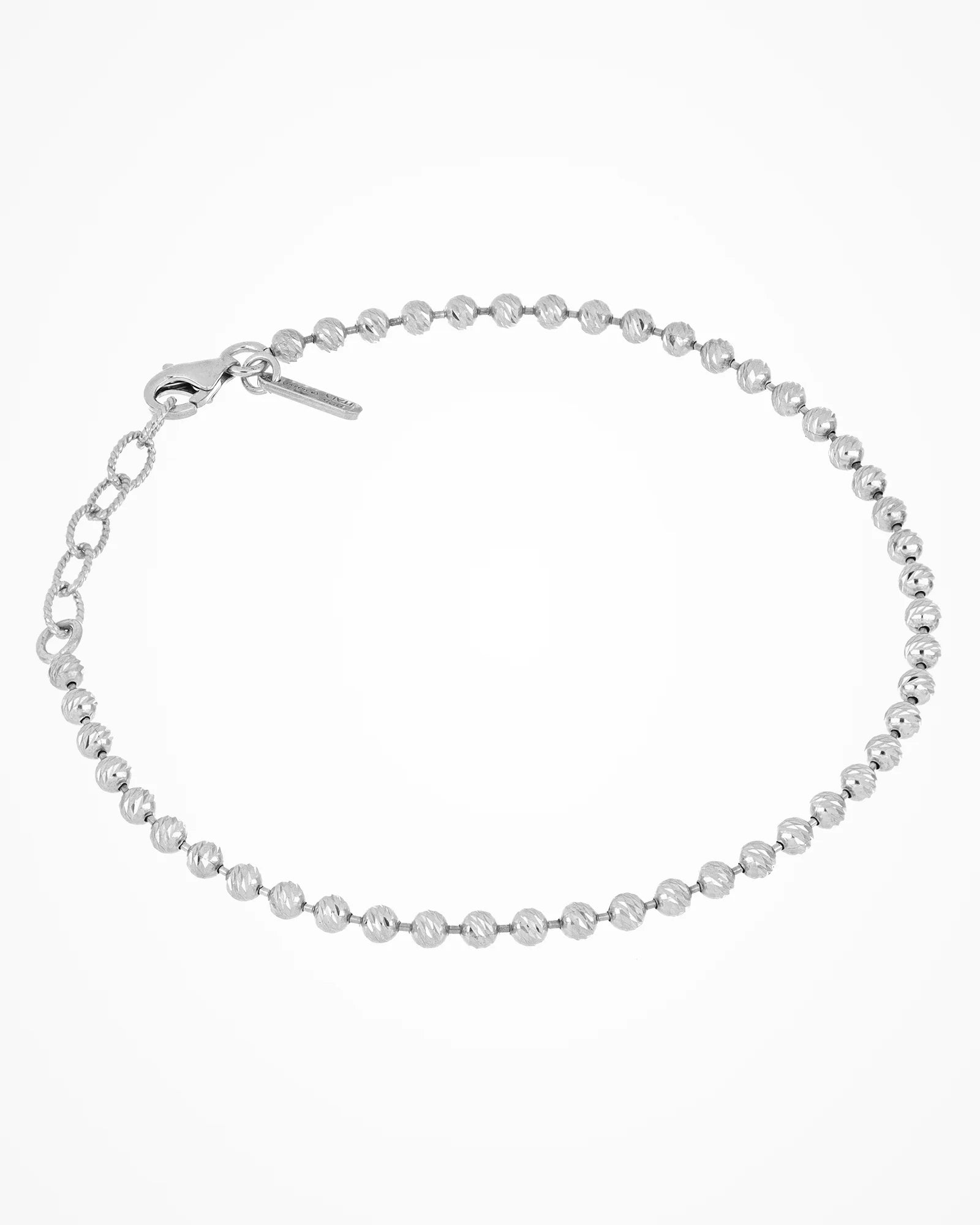 Bracciale in argento con una sottile catena di palline diamantate che regalano una brillantezza che dura nel tempo.