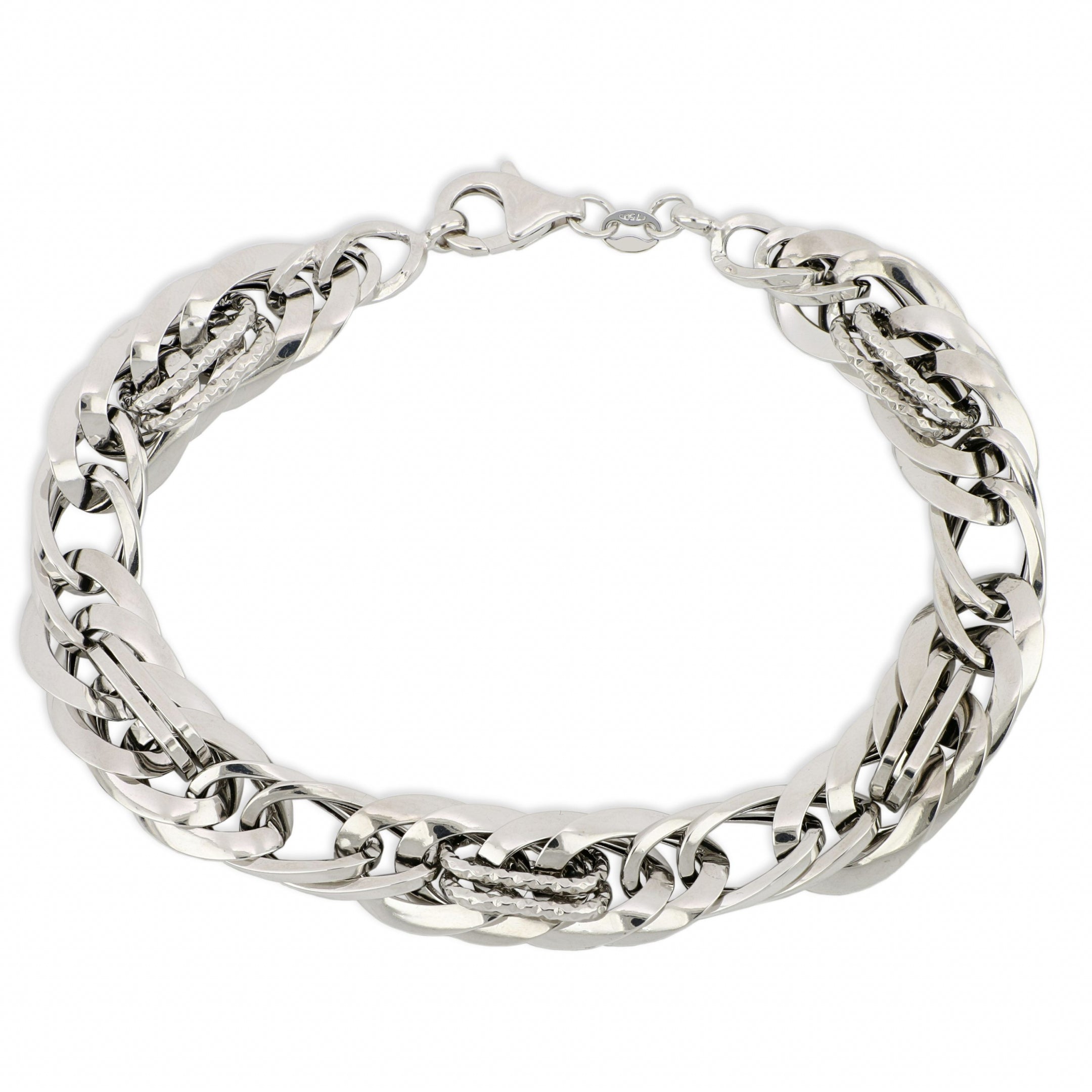 Bracciale in oro bianco a catena vuota, lucido e martellato – larghezza max cm1,10