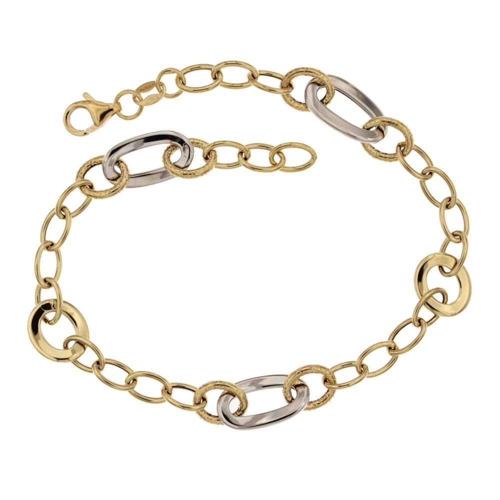 Bracciale in oro bianco e giallo a catena vuota, lucido e lavorato – larghezza max cm0,9