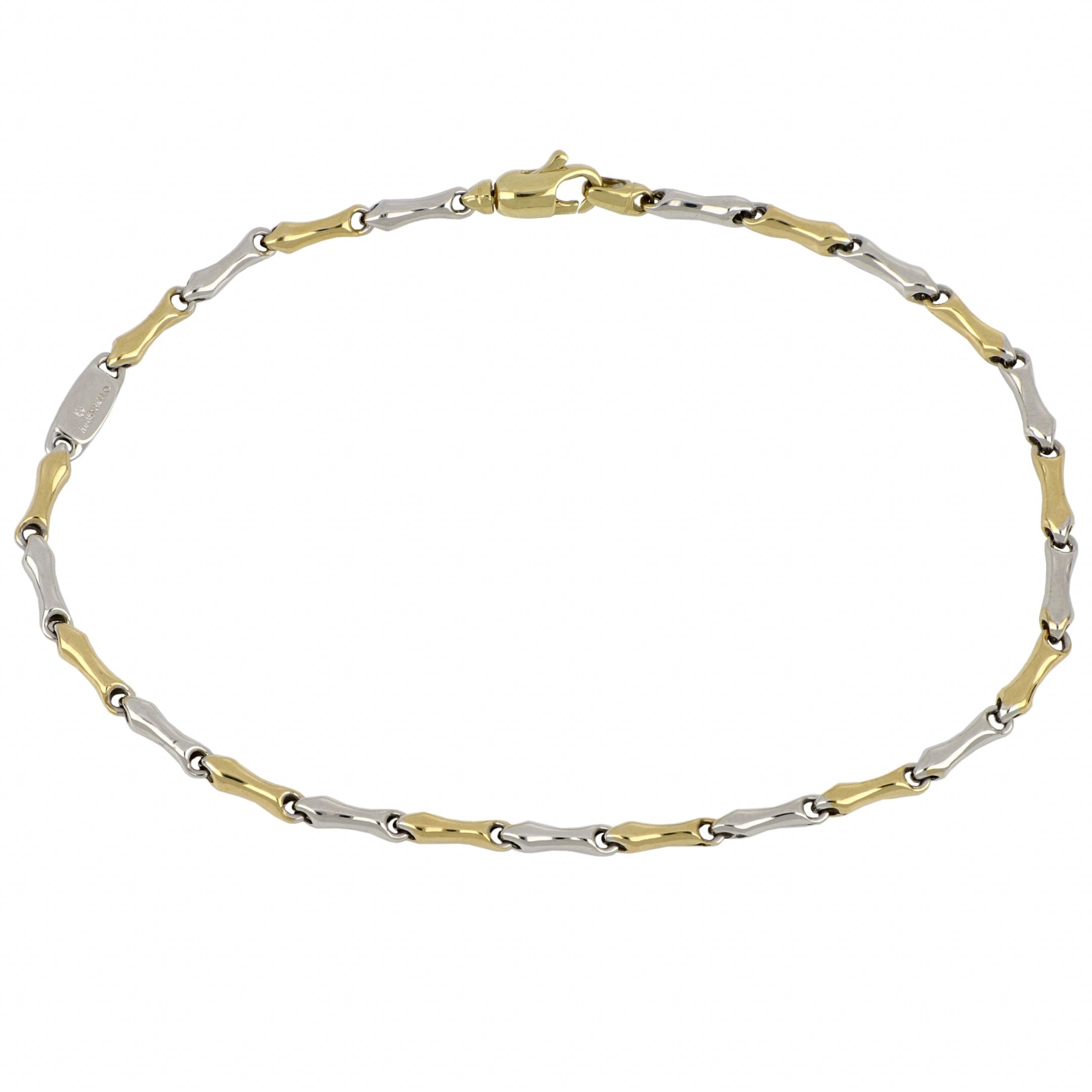 Bracciale in oro giallo e bianco a catena vuota, modello tubolare/ossino, finitura lucida – spessore catena 0,25cm