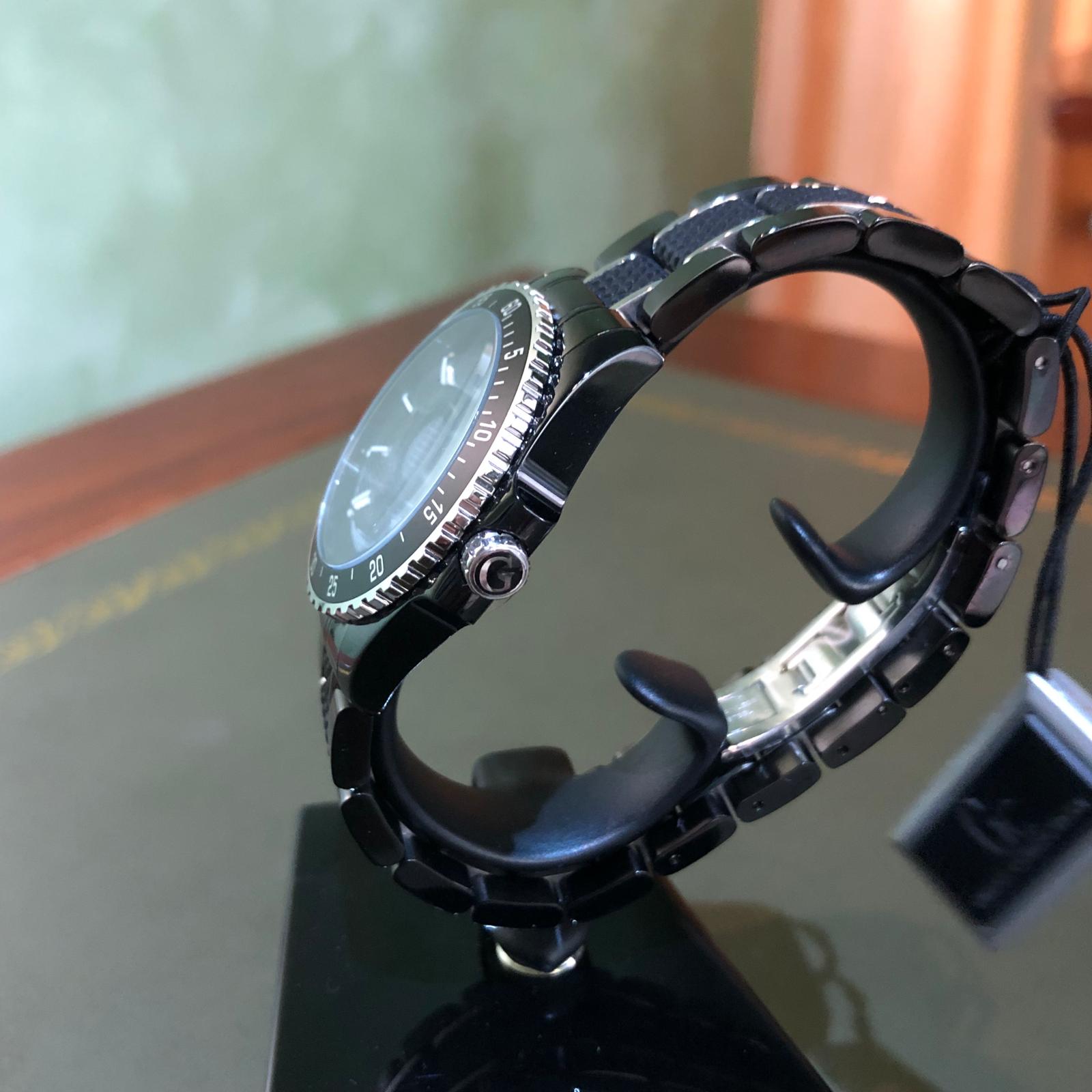Resistenza all'acqua: 100 m -10 ATM -10 barColore del cinturino: Nero Colore del quadrante: Nero Dimensione della cassa: 35 mm Genere: Donna Materiale del cinturino: Ceramica Resistenza all'acqua: 100 m - 10 ATM - 10 bar