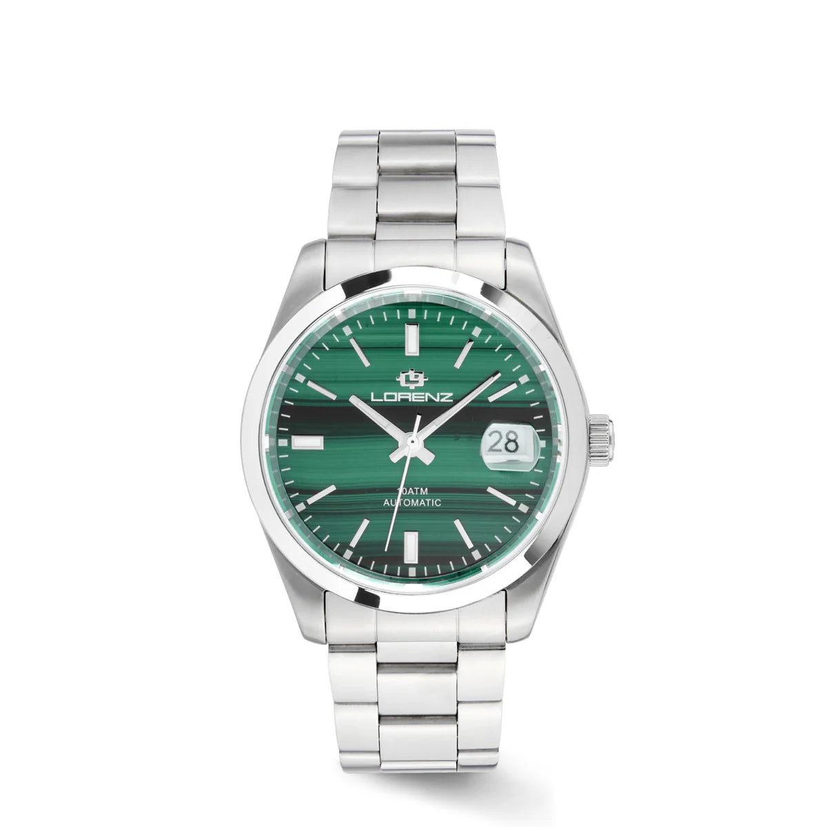 La famiglia Ginevra si ispira ai classici del design ginevrino. Orologi con bracciale sportivo oppure più elegante, sempre di moda. Orologio classico con movimento automatico TM NH35 tre sfere, calendario e finiture di alto livello. Corona e fondello a vite, vetro zaffiro, chiusura solida. Il modello 030235MM ha il quadrante in vera pietra malachite, che dona unicità all'orologio: ciascuno sarà un pezzo unico e originale. La malachite è nota per le sue intense sfumature di verde, che vanno dal verde chiaro al verde scuro, con bande e venature naturali che la rendono inconfondibile. Il suo colore è dovuto alla presenza di rame nel minerale. Per la cristalloterapia, alla malachite vengono attribuite diverse proprietà benefiche, tra cui la capacità di assorbire energie negative, favorire il cambiamento e stimolare la creatività. La sua bellezza e le sue proprietà la rendono una pietra molto apprezzata in diverse culture. Ogni orologio è unico e differisce per colore e venature. L'immagine è indicativa.