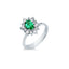 Anello in oro bianco 18 kt con prezioso smeraldo dello Zambia da 0.83 ct circondato da diamanti taglio brillante per un totale di 0.48 ct (colore G, purezza VS). Un gioiello raffinato e luminoso, simbolo di eleganza naturale e armonia senza tempo.