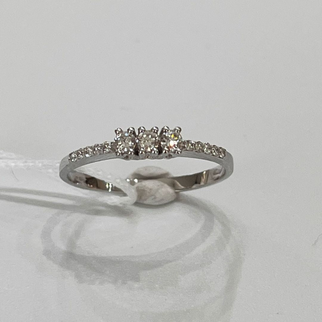 Karal, anello modello Trilogy in oro bianco 18 kt con 3 diamanti taglio brillante per complessivi ct 0,15 G VS e diamantini sul gambo per ct 0,08 G VS