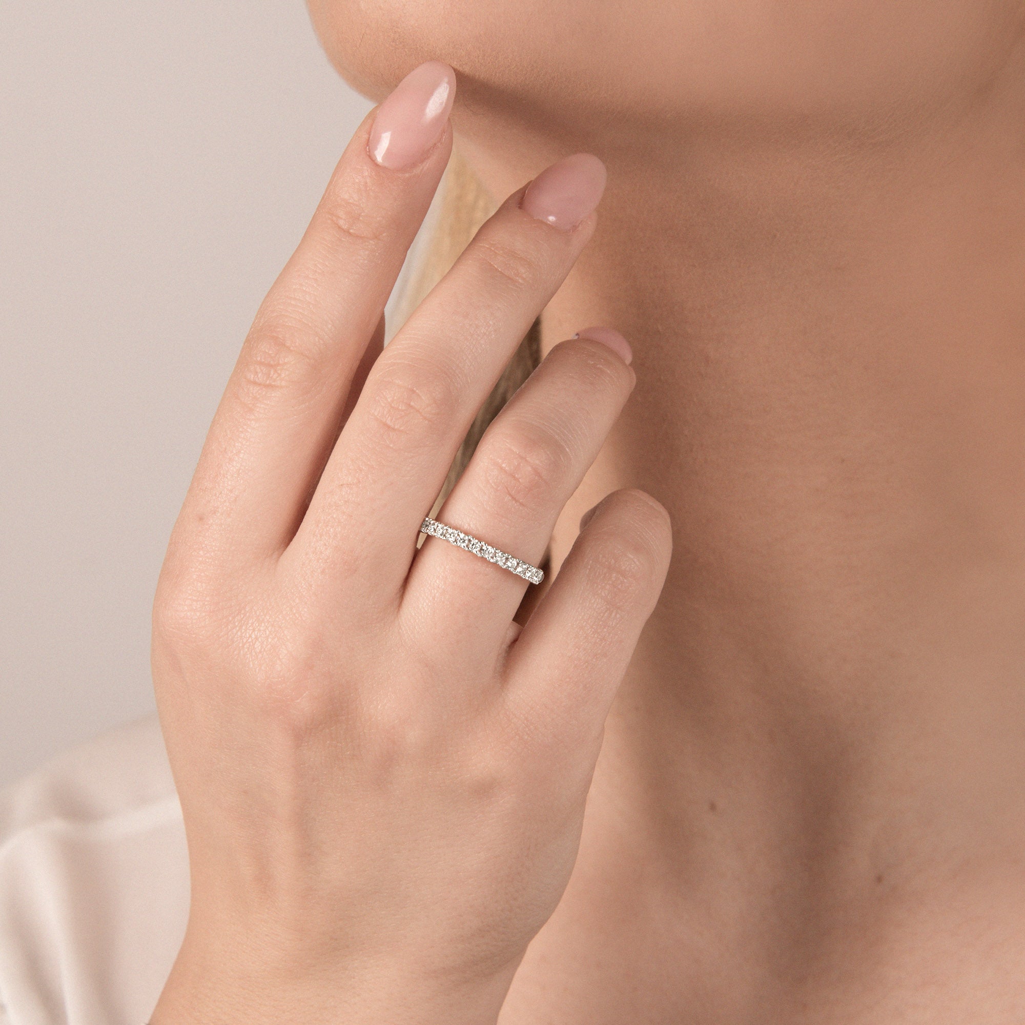 Mirco Visconti, anello veretta in oro bianco 18 kt di grammi 1,50 con 13 diamanti taglio brillante per complessivi ct 0,32 G/VS