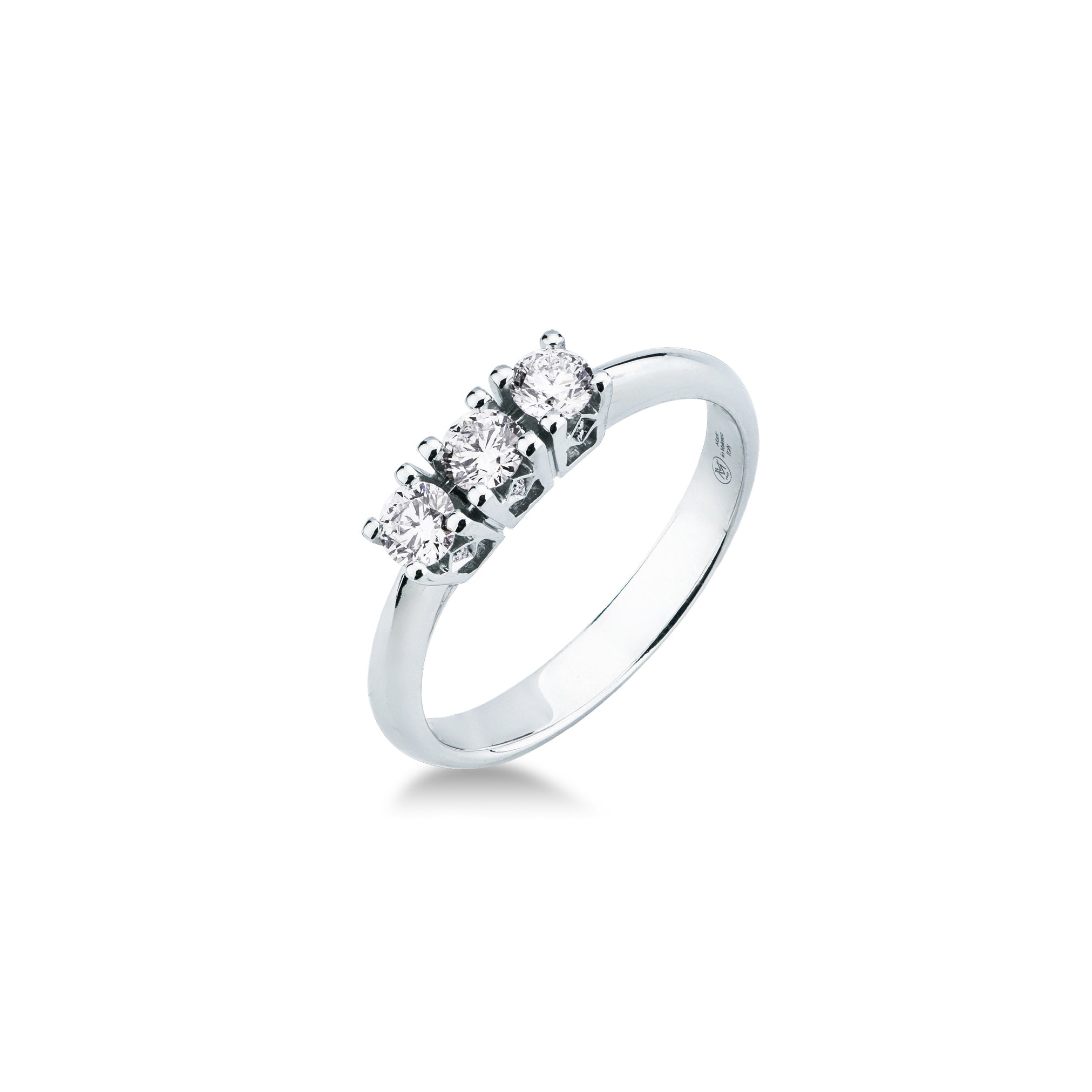 Mirco Visconti, anello modello Trilogy in oro bianco 18 kt di grammi 3,30 con 3 diamanti taglio brillante per complessivi ct 0,40 + 0,01 F VS
