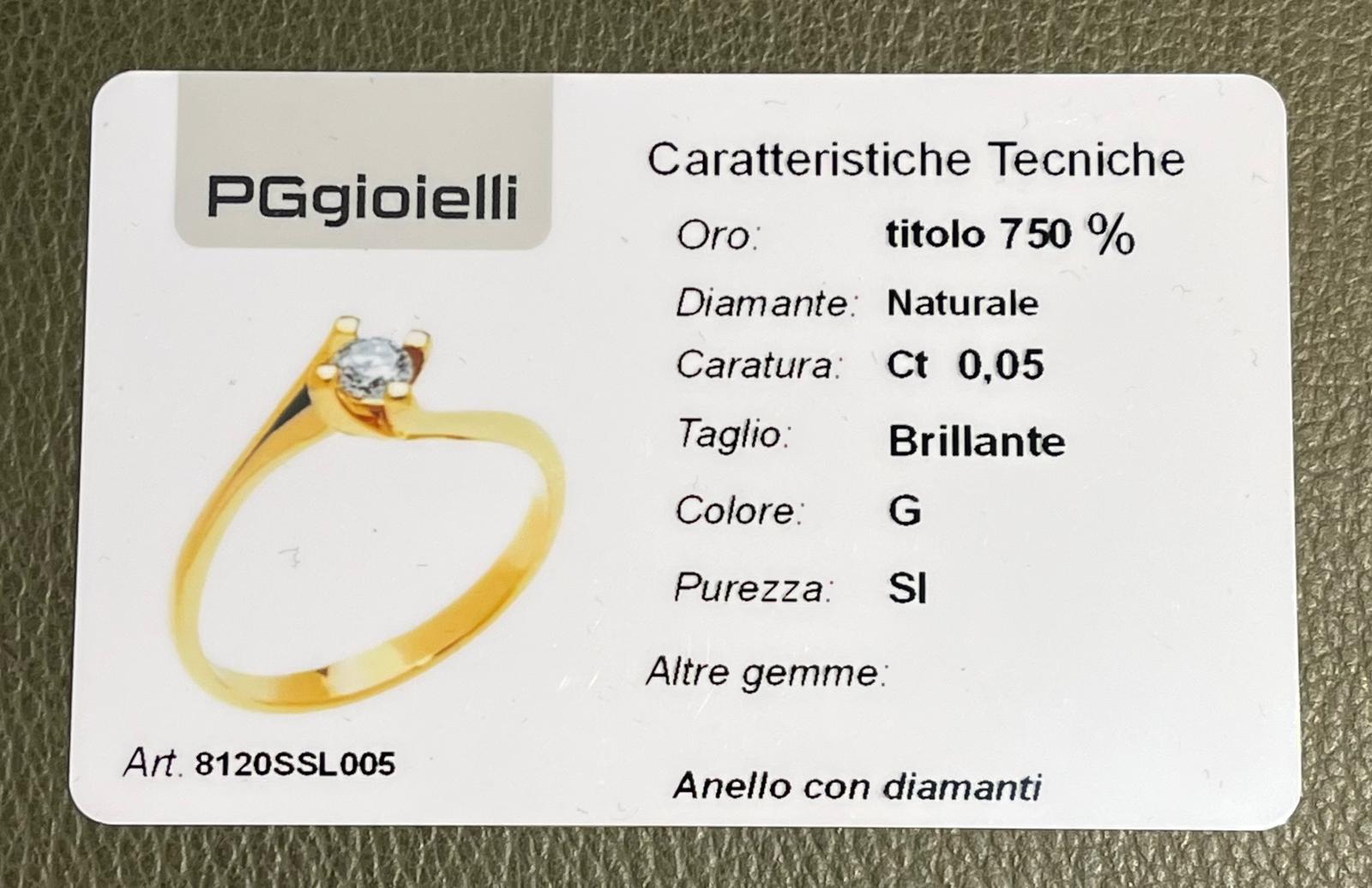 PG Gioielli Anello Solitario in Oro Giallo 18kt con Diamante Brillante referenza 8120SSL005