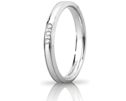 Unoaerre Fede Orion "slim" in oro bianco 3 mm con diamanti